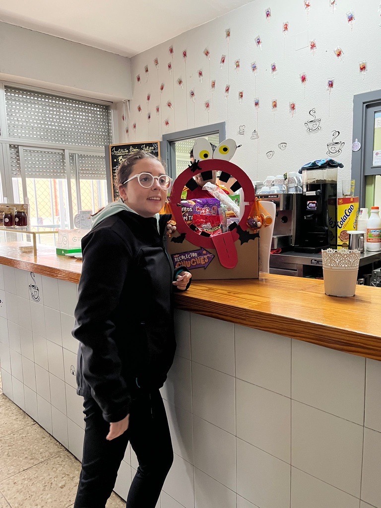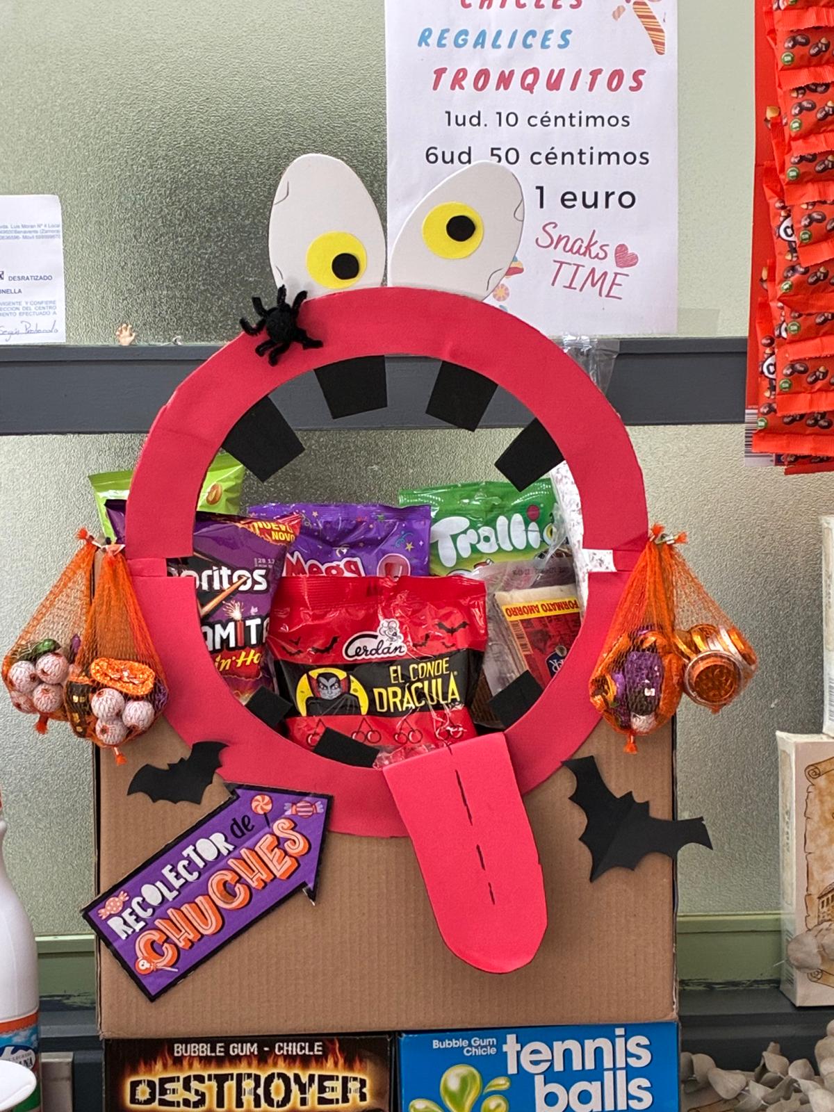 Alumnos de 1º de Actividades Comerciales preparan una promoción para HALLOWEEN en el módulo Marketing en la actividad comercial con la ayuda de su profesora Luz Salvi. La promoción es una acción conjunta con la cafetería del centro y consiste en participar en una rifa de una cesta de chuches por la compra de un chicle. La promoción fue un éxito durante dos días vendierón casi 400 chicles. Los alumnos han aprendido a realizar una acción dinamizadora desde su concepción, preparación de materiales y realización de la misma. Felicidades a todos ellos!